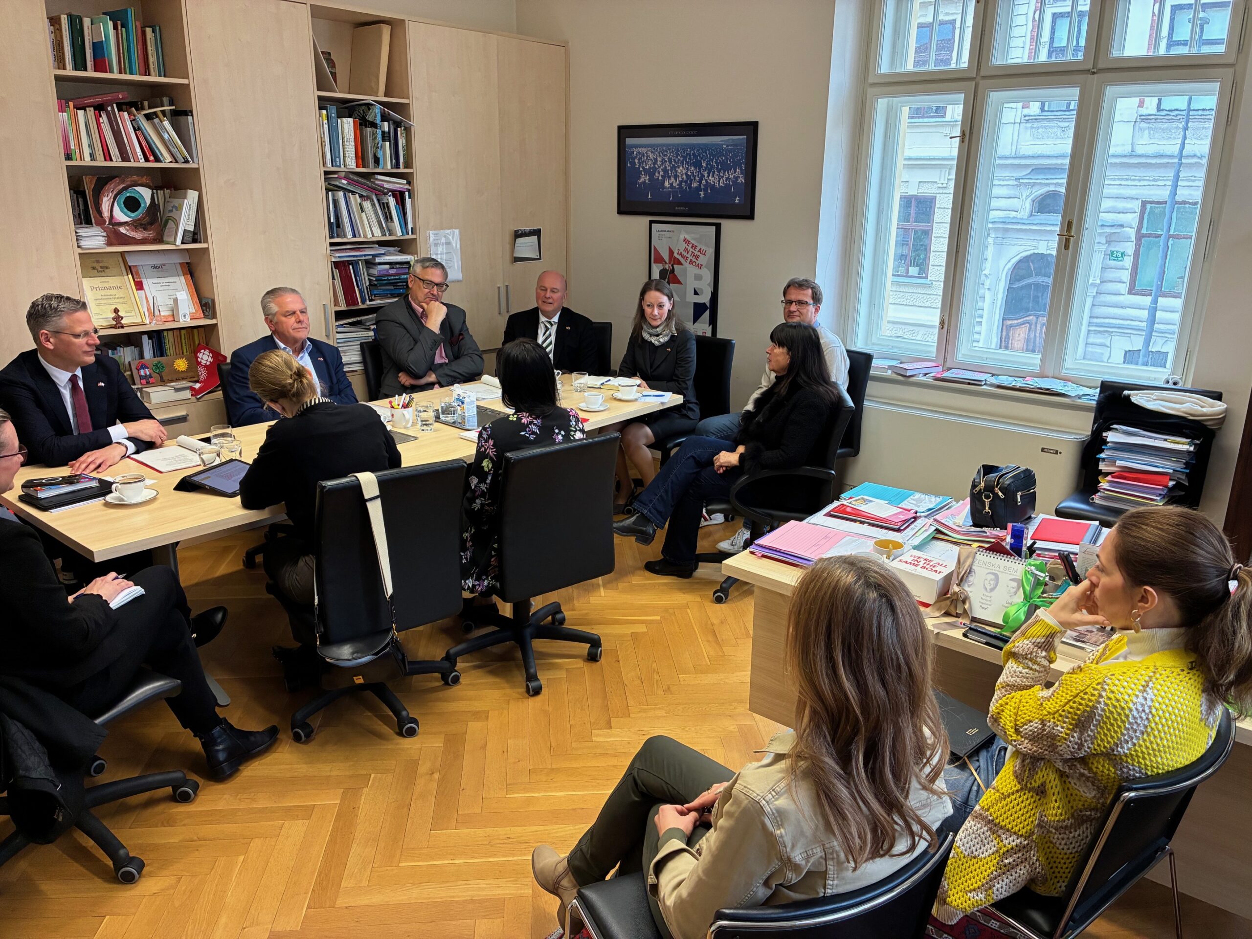 On Thursday, April 2, 2026, a delegation from the German Federal Parliament and the Deputy Ambassador of the Federal Republic of Germany to Slovenia, Ms. Julia Kohlheim, visited the Institute for Ethnic Studies.