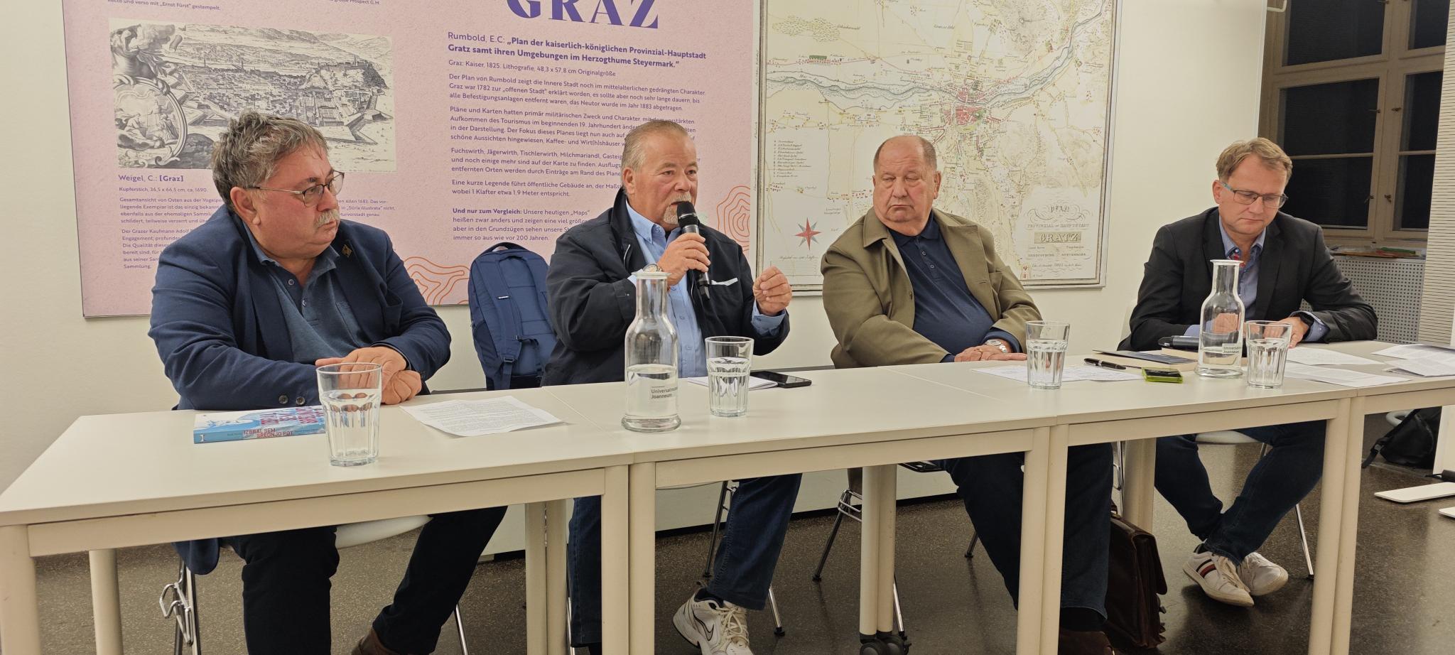 V četrtek, 9.10. ob 18.30 je v Slovenski čitalnici Štajerske deželne knjižnice v Gradcu (A-8010 Graz, Kalchberggasse 2) potekala predstavitev knjig dveh nekdanjih manjšinskih voditeljev – enega primorskega in enega koroškega: »Izbral sem srednjo pot« Rudija Pavšiča ter »Identität ohne Feindbild« Marjana Sturma. Pogovor sta vodila sodelavca ljubljanskega Inštituta za narodnostna vprašanja dr. Danijel Grafenauer in dr. Boris Jesih.